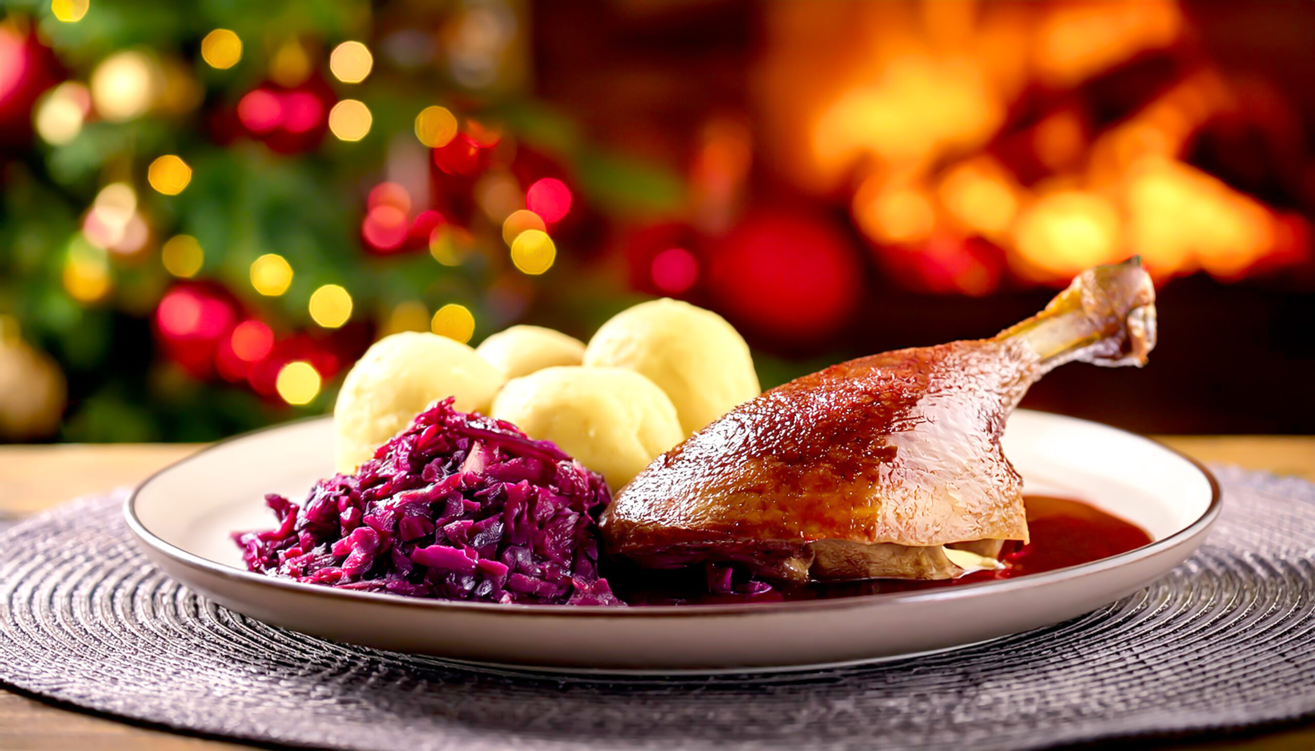 Braised roast pork with apple red cabbage & potatoe dumpling